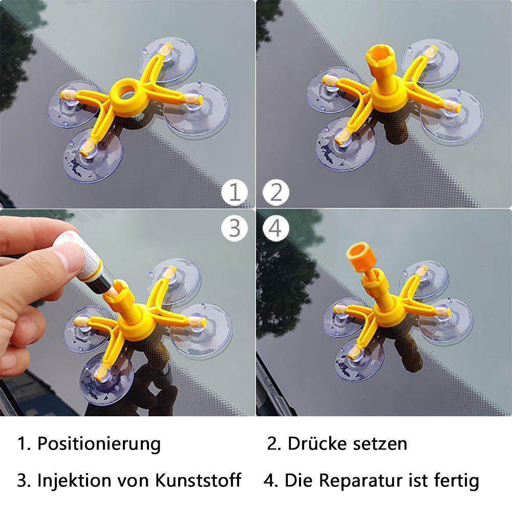 • Einfach zu bedienen: Sie können in nur 30 – 50 Minuten Ihre defekte Windschutzscheibe reparieren. Brauchen Sie keines spezielle Werkzeug und keine Fachkenntnisse. Befestigen Sie einfach die Zentriereinheit mit den Saugnäpfen über der Schadenstelle, füllen das Kunstharz genau ein und glätten das Harz.